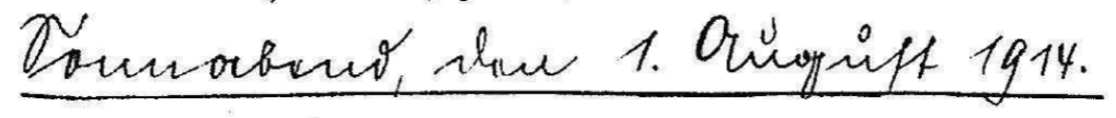 Mobilmachung verlangte. Die Zeitungen vom vergangenen Abend und heute morgen verhielten sich auffallend ruhig im Verhältnis zu ihren aufregenden Nachrichten der letzten Tage. Man betrachtet dies auf der einen Seite als Zeichen der Verständigung, auf der anderen wieder als die Ruhe vor dem Sturm. Als Vertreter der letzten Ansicht, sollte ich recht behalten. Ich hatte gerade meinen Nachmittagskaffee getrunken, als ich in das Kompagnie-Geschäftszimmer gerufen wurde. Bei Ausführung dieses Auftrages, wurde mir schon auf dem Korridor, die Nachricht, daß die Mobilmachung angeordnet sei. Der Feldwebel übergab mir den Befehl, welcher die Mobilisierung der gesamten deutschen Armen anordnete und den 2. August als 1. Mobilmachungstag festsetzte. Ich sollte ihn auf dem schnellsten Wege dem Hauptmann überbringen. Am Kasernentore wurde ich nur zufolge meines Auftrages durch gelassen, denn das Ausgehen war vorläufig untersagt. Mit der Straßenbahn gelangte ich bis ans Alberttheater, in dessen Nähe (Glacisstr.) mein Kompagnieführer wohnte. Dieser machte sich auf die Nachricht sofort auf den Weg zur Kaserne. Auf den Straßen bemerkte man Gruppen von Männern und Frauen, die sich mit dem Schrecken eines bevorstehenden Krieges ängstigten. Auch mehreren bereits kriegsmäßig ausgerüsteten, Feldgrau eingekleideten Bahnschutzwachen, welche nach den Bahnhöfen marschierten, begegnete ich. Daneben rasten mit Offizieren besetzte Automobile im schnellsten Tempo unaufhörlich