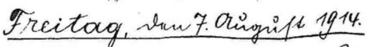 Nach dem gestrigen Verschlafen wurde ich heute ganz besonders pünktlichgeweckt. In Ruhe konnte ich meinen Kaffee trinken, um mich alsdann von meinen liebenswürdigen Wirtsleuten und ihrer kleinen Nichte zu verabschieden. Vorher mußte ich versprechen, allen einmal zu schreiben. Weil es heute noch zeitig war machte ich den Umweg über die Wintergartenstraße, und besuchte dort auch Louis Oswald. Dieser hatte als Ersatz Reservist Pferdetransport gehabt und war noch ermüdet. Über meinen Besuch war er sehr erfreut. In der Kaserne gab’s viel Arbeit. Durch das Abrücken, des Regiments war Platz geworden. Wir zogen in die Reviere der Leib- und gemischten Ersatz-Brigade. Von heute ab bildeten die 1. und 2. Kompagnie vom Ersatz Bataillon 100 und die 3. u. 4. Kompagnie vom Ersatz Bat. 101 das mobile Brigade-Ersatz-Bataillon 45, welches zur gemischten Ersatz-Brigade zählte. Als Brigadeschreiber der letzteren war mein Freund Uffz. Wolf befehligt. Mein Korporal, mit dem ich Rekruten ausbildete, Unteroffizier Vetter war dem Rekrutendepot zugeteilt, welches sein Ausbildungsexerzieren heute begann. Unser Bataillon sollte von jetzt ab stündlich bereit sein abzumarschieren. Wir waren es aber noch nicht daher mußten wir unsere Arbeitskraft bis aufs äußerste aufkommen. Durch Unkenntnis des Schreibers vom Er. Batt. 100 hatten wir zahlreiche Garnisonsdienst fähige Leute mit erhalten. Diese wurden heute alle zur 3. Komp vom Ers. Batt 100 geschickt, wir erhielten dafür soweit nötig Felddienstfähige Mannschaften. Durch das wiederholte Aus- und Einkleiden, durch Streichen und Neuaufnahmen, in den Listen entstand, viel überflüssige Arbeit. Abends sollte alles in der Kaserne schlafen. Die meisten Kameraden leisteten aber den Einladungen ihrer Wirtsleute folge und gingen nochmals in ihre Quartiere, welche alle sehr gut waren. Ich setzte mich auf die Straßenbahn und fuhr zu Muttern, um mich im altgewohnten Bett zu aalen.