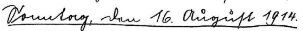 1. […] 16. August 1914 „In Chemnitz hatten sich bereits eine große Anzahl auf diese Weise Herangerufener eingefunden. Mit fröhlichem Lachen, Brust und Mütze mit Rosen geschmückt, schied mein Freund Wolf von seinen wartenden Eltern. Er konnte ja als Brigadeschreiber auf eine Heimkehr rechnen.“ […]