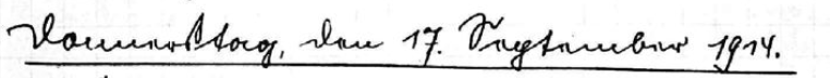 Früh 1/2 50 fahren die Lebensmittelwagen nach Hessen. In dem Glauben daß diese wiederkommen, bleiben wir mit unserer Bureaukiste, hier. Aber es währte nicht lange, so mußte die ganze Kompagnie abrücken. Wir brachten unsere Kiste glücklich auf dem Patronenwagen unter und treten mit diesem einen langen Marsch an. Es ging zurück nach Deutschland über Foulcrey, Ibigny, St. Georges nach Saarburg. Bei einem Halt, traf ich meinen Freund Wolf. Er teilte mir mit, daß er als Brigade Schreiber abgelöst sei, und den Komp. Dienst mitmachte. Wir suchten zusammen Pflaumen. Ich hatte gerade von Papa ein Verzeichnis mit Verwundeten vom Leib-Regt. erhalten. Uns bereitete es Leid, daß unsere Kameraden von der 8. Komp. furchtbar gelitten hatten. In größtem Regenwetter, kamen wir nach Saarburg und bezogen in einer Schule Unterkunft. Trotz des Regens wurde am Abend dem Wirtshaus ein Besuch abgestattet, wo wir seit 5 Wochen, d. h. seit Verlassen der Garnison, das erste Bier getrunken haben. Die Wachen stellten Landsturmleute. Um 90 ging alles schlafen.