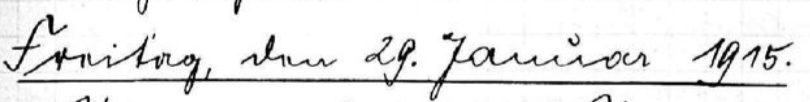 Sehr viel dienstliche Schreibarbeit. Im Gelände nichts neues. Es ist kein Schuß hörbar. Burger erhält mit der Post am Nachmittag die Nachricht, daß ihm am 26.I. eine Tochter geboren wurde und ist über den glücklichen Verlauf, sehr erfreut, hat er doch gerade heute seinen Geburtstag.