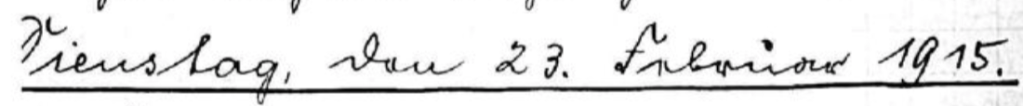 dadurch erlangte Kenntnis von Privatangelegenheiten für sich zu behalten. Außerdem sei es bei der Menge der täglichen Post unmöglich, eine besondere Angelegenheit zu merken. Trotzdem, hat es die Zahl der heute abgehenden Briefe außerordentlich vermindert. Der Feldwebel hat bei der Befehlsausgabe im Batl, viel Aufregung, sodaß man für seine Gesundheit fürchten kann. Seine Nervosität erreicht einen unheimlichen