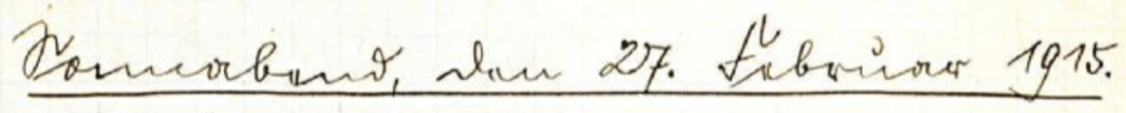 1 Das gleiche herrliche Wetter, wie gestern und völlige Ruhe im Kampfgelände erfüllt mit Friedensgedanken. Gern würde man sich daheim fern von tückischen Gefahren der schönen Landschaft erfreuen. Ein Gang auf die Höhe hinter unserem Quartier gewährt, eine Fernsicht über die zahlreichen Waldkuppen, der Nordvogesen und die anschließenden fruchtbaren Ländereien Frankreichs. Ein Jägergrab erinnert an all die Vergänglichkeit irdischer Schönheit. Zahlreiche metertiefe Granatlöcher zeigen, die Wirkung der schweren Geschosse mit denen wir vor wenigen Tagen überschüttet wurden. Aus den uns zugegangenen Karten kranker Kameraden ersehen wir, daß diese glücklich und schnell ins heimatliche Sachsenland gelangten. Die im Aug. als Kriegsfreiw. eingetretenen Offiziersaspiranten (keineswegs Geisteshelden) schreiben, daß sie zu Leutnants befördert wurden, während ein als Vzfw. vorgeschlagener Utffz. welcher 3 Jahre aktiv ist, nichts wird, trotzdem er sehr befähigt ist und vor allem Erfahrung hat. Man kommt am besten, wenn man keine Pläne in Bezug auf Rang und Orden hegt, dann kann nichts scheitern.