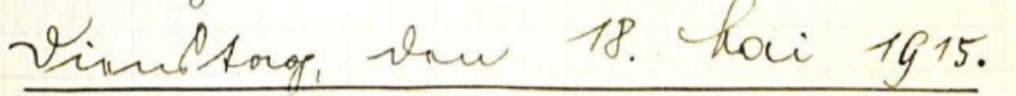 Trübes Wetter mit teilweisem Regen. Unseren zur 11. Komp. versetzten Kamerad Rösch gehen die Pferde infolge Versagens der Bremse an steilem Hange durch. Rösch blieb blutüberströmt liegen, wahrscheinlich haben ihm die Pferde den Kopf zertreten. Er starb noch am Abend. Er war die Stütze seiner taubstummen Eltern. Um seinen Wunsch nach Pferden erfüllt zu sehen, meldete er sich freiwillig zur 11. Komp, was ihm zum Verhängnis wurde.