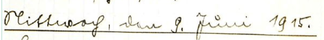 Mit größtem Bedauern erhalten wir Kenntnis, daß unserem am 31.5. verwundeten Vzfw. Schramm das Bein amputiert werden musste. Oh schrecklicher Krieg mit deinem namenlosen Elend nimm ein baldiges Ende du hast der Menschheit genug des grenzenlosesten Jammers gebracht. Weh den Menschen, denen die Verantwortung dafür zufällt!