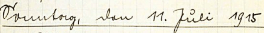 Mit Große von der 2./23 und Spranger aus der Marketenderei mache ich mich am Morgen auf den Rückweg, nachdem ich vorher nochmals beim Zahlmeister war. Es wurde ein herrlicher Morgenspaziergang bei angenehmer Unterhaltung. Im Waldhause harrte meiner genügend Arbeit. Der Tag verläuft recht ruhig. Im Regt. Stabsquartier war vergangene Nacht große Feier aus Anlaß der Verleihung des Eis. Kreuzes I Klasse an unseren derzeitigen Batl. Führer, Herrn Hauptmann von Kracht, welchem dieses in seiner Eigenschaft als zweiter Generalstabsoffizier der Division verliehen worden ist. Gegen Abend wird festgestellt, wie viel Fahrer Infanteristen sind, welche jetzt durch Trainsoldaten angeblich abgelöst werden sollen.
