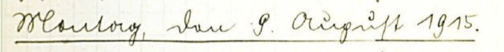 Ein prachtvoller Sommertag bietet den Fliegern Gelegenheit zur Aufklärungstätigkeit, etwa 20 Fran. rattern über die Stellung. Als gegen mittag Utff. Trinks aus Val zurück kehrt, berichtet er, daß ein Franz. Flugzeug durch Artillerievolltreffer in Brand geschossen etwa bei Tanconville und ein anderes durch 2 deutsche Kampfflugzeuge bei Petitmont zum Landen gezwungen, heruntergeholt, wurden.