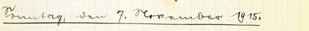 Ein herrliches Herbstwetter so rechtes Sonntagswetter, wie man im Frieden wünscht. Aller Arbeitsdienst fällt aus, auch wir feiern nach Möglichkeit. Bei den 70 ern lebhaftes Artilleriefeuer und das Dröhnen von Minen. Abends zwischen 6:30 bis 7:00 läuten alle Glocken im Operationsgebiet wegen des Sieges bei Nisch. Auch zu uns in die Waldeinsamkeit dringen entfernte Glockentöne. Nach dem heutigen Heeresbericht glückte es den Unseren 131 Geschütze zu erbeuten bei der Verfolgung der Serben. Ein Skatchen bei den Schuhmachern beendet den Sonntag.