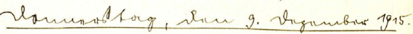 zahlen je Mann 1.- M aus, weil die Zeit zu kurz ist, um einen gleichen Abend zu veranstalten. Außerdem ist in den alten Kompagnien nicht mehr eine derartige Begeisterung für solche Veranstaltungen, wie bei der erst 1/4 Jahr im Felde befindlichen 4. Der Feldwebel hatte etwas unvorsichtig darüber gesprochen, was ihn ein Zurredestellen durch den Komp. Führer Oberleutnant v. Winckler eintrug. Abends mache ich eine kleine Spritztour durch die Gasthäuser mit Utff. Trinks. Bei Bricka [??] beendete ich diese, weil 10 h herangerückt war bis zu welcher Zeit ein Ausgehen gestattet ist. Utffziere können wie in der Garnison bis 12h bleiben.