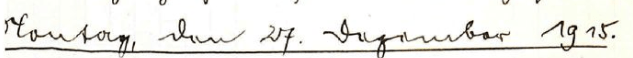 Das schön zusammen, gestellte Blättchen hat unser Ufftz. Rothe in der Werkstatt der Papierfabrik von Mazarand in Cirey angefertigt. Es zeigt damit große Geschicklichkeit in seinem Beruf. Es taucht heute das Gerücht auf, daß Griechenland den Verbündeten an unserer Seite den Krieg erklärt habe. Wünschenswert wäre es, doch leider nicht wahrscheinlich. Gegen Abend wütet rechts von uns die Artillerie, doch sie beruhigt sich bald wieder.