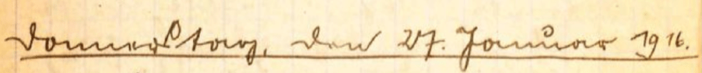 Vormittags kommt der Feldwebel in Begleitung von Fw. Ltnt. Döbeling und Gefr. Webers aus Cirey vom Begräbnis zurück. Ein Batl.- Befehl hebt zum allgemeinen Bedauern die Urlaubserteilung auf. Das Unangenehme dieser Meldung macht aber schnell der daraus gefolgerten Hoffung Platz daß die Entscheidung nun wohl bald erkämpft werden wird.