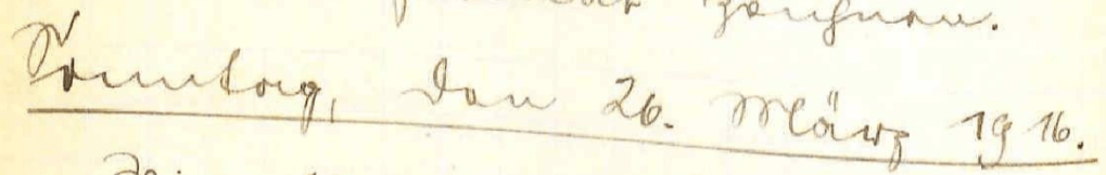 1/2 8 kommt der Hptmann und die Leutnants, die Komp. rückt zugsweise hinein, die Feldküche hinterher. Ebenso macht der Feldwebel und Burger zur Ausgabe von Sachen hinein. Ich gehe früh hinunter mit Batl. Geschäftszimmer, um eine Meldung zu erledigen. Es ist sehr kalt, der Boden festgefroren, aber prachtvolles Wetter. Bald surren die Propeller der Flieger über uns. Dicht hinter uns gabs einen Luftkampf, von dem ich leider nichts sah, der aber damit endete, das jeder Feind im Gleitfluge hinter seine Linie niederging. Nachmittags rückte die Komp wieder hinaus in Die Stellung, voll des Lobes über die Leistungen des Theaters aber müde, der Anstrengung des hin- u. Rückmarsches, das Alleinsein benutze ich zum Ordnen meiner eigenen Sachen und zu Privatschreibereien u. Nachforschungen über für später Wissenswertes.
